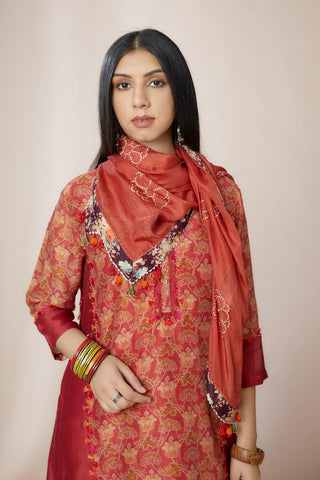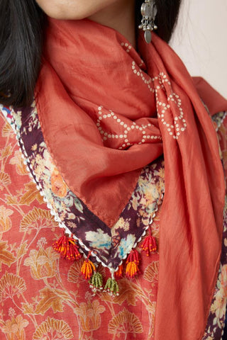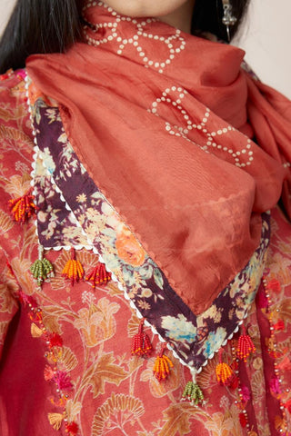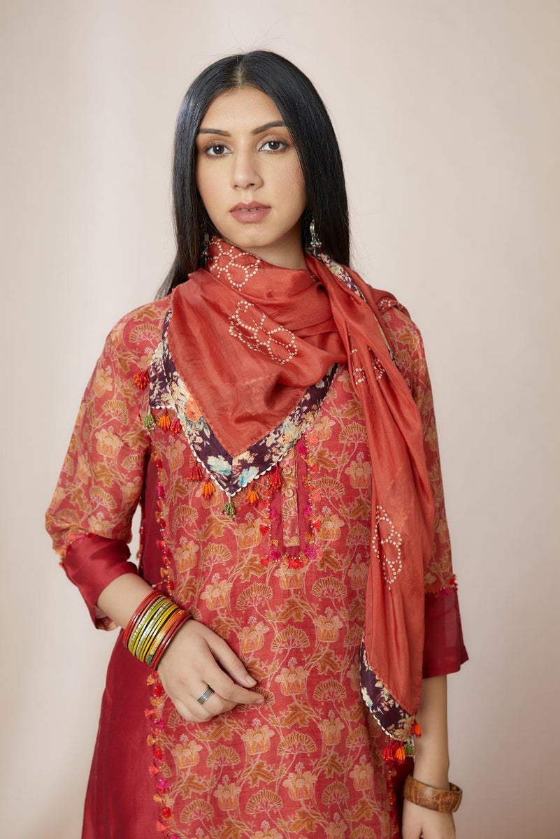 Hand block printed scarf with digital print at edges – Kora India icon