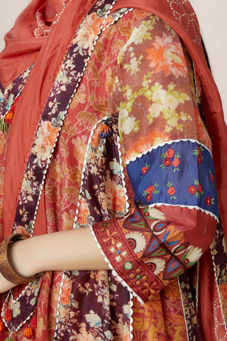Hand block printed scarf with digital print at edges Sale