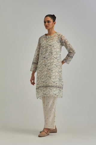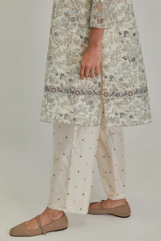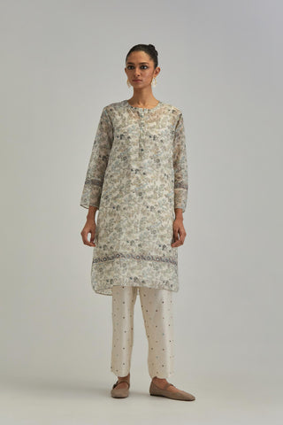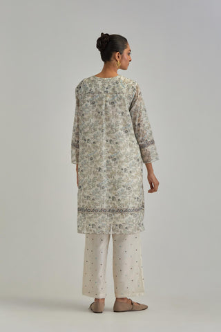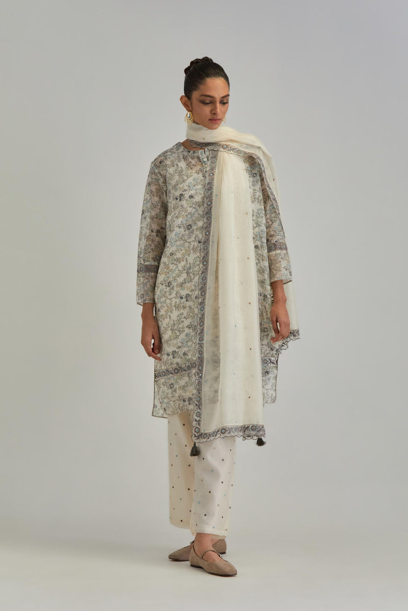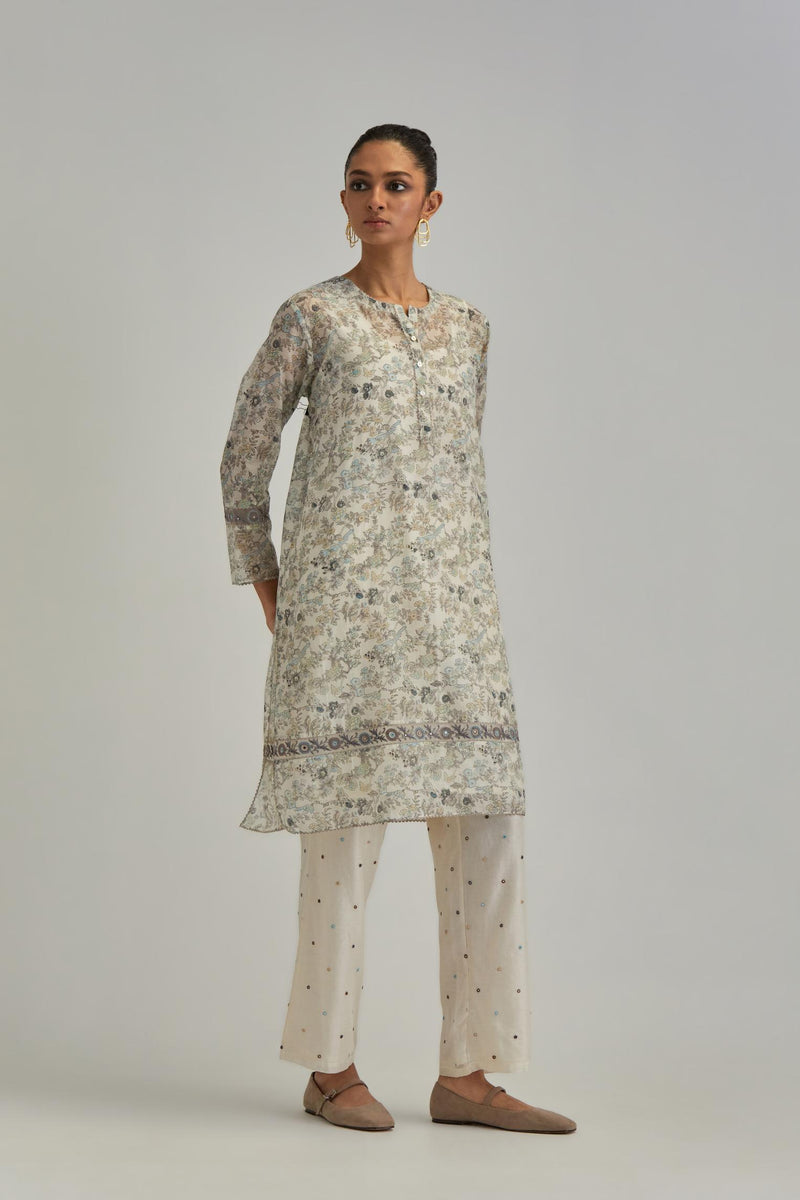 Silk Chanderi short kurta set with all-over earthy coloured hand block – Kora India icon