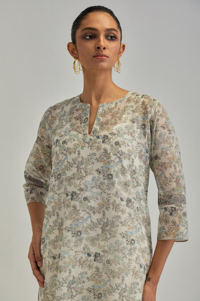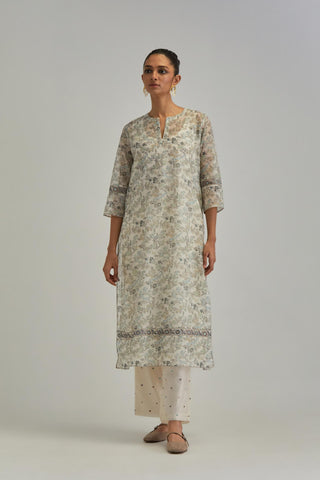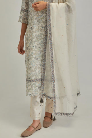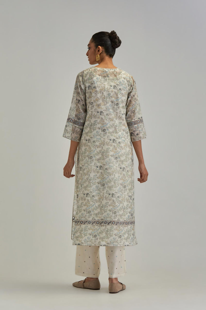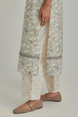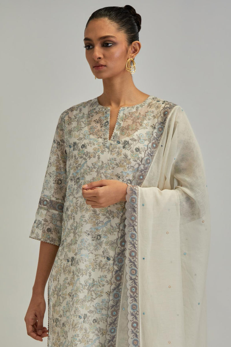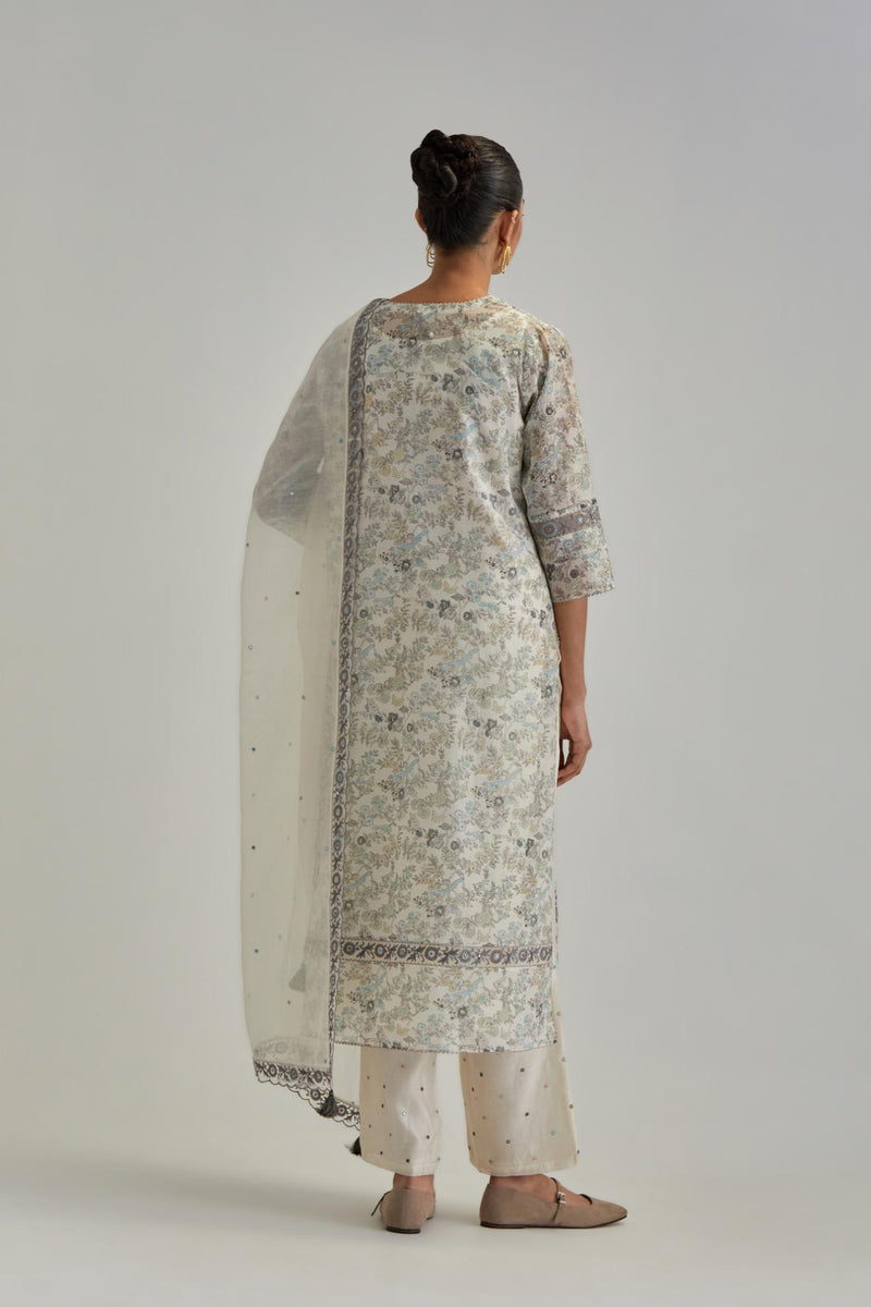 Silk Chanderi straight long kurta set with all-over earthy coloured ha – Kora India icon