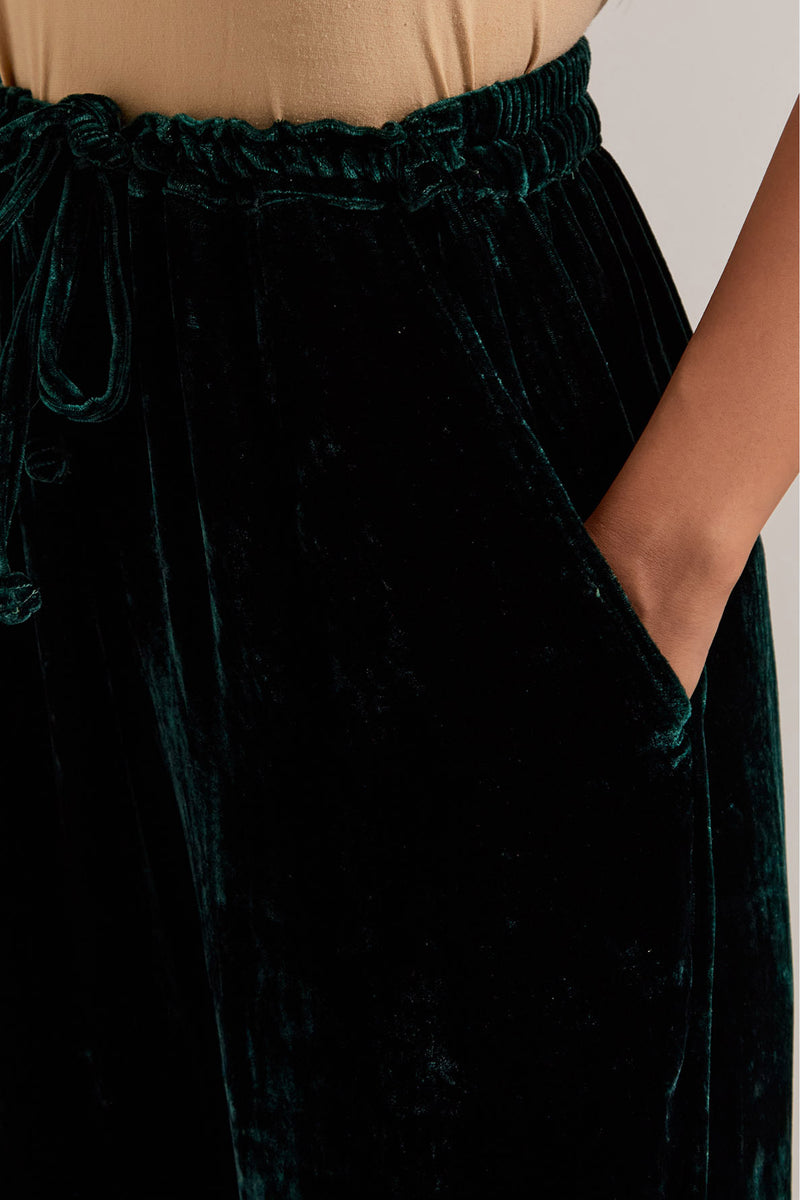 Dark green Silk velvet salwar, highlighted with hand embroidered bead, – Kora India icon