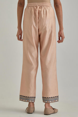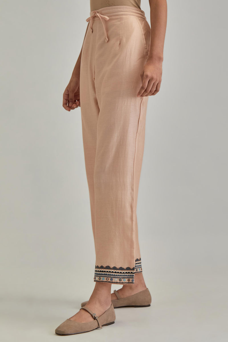 Pink silk Chanderi straight pants with earthy coloured applique and Aa – Kora India icon