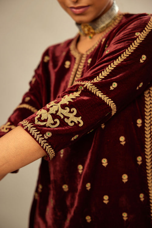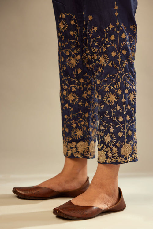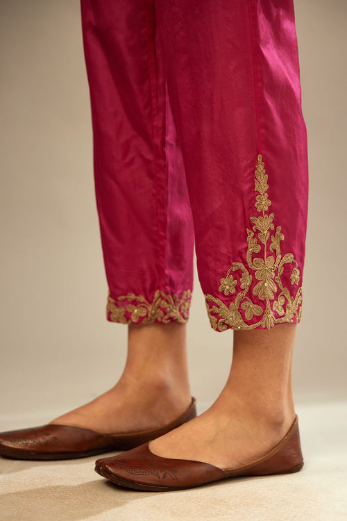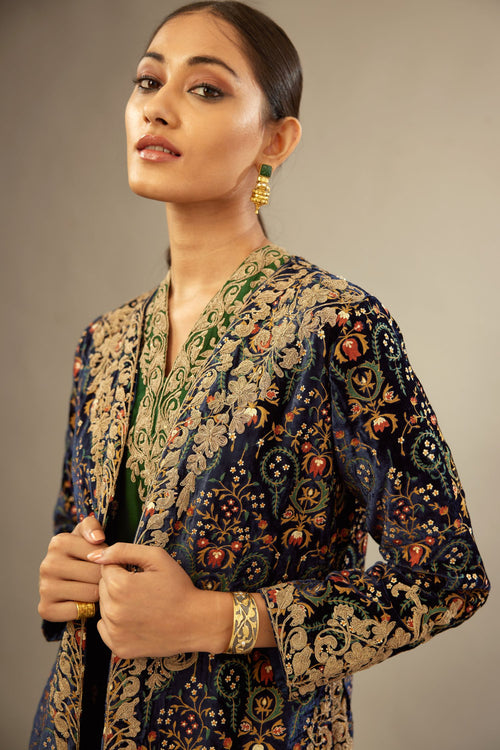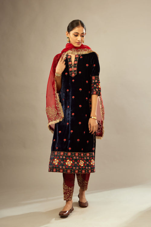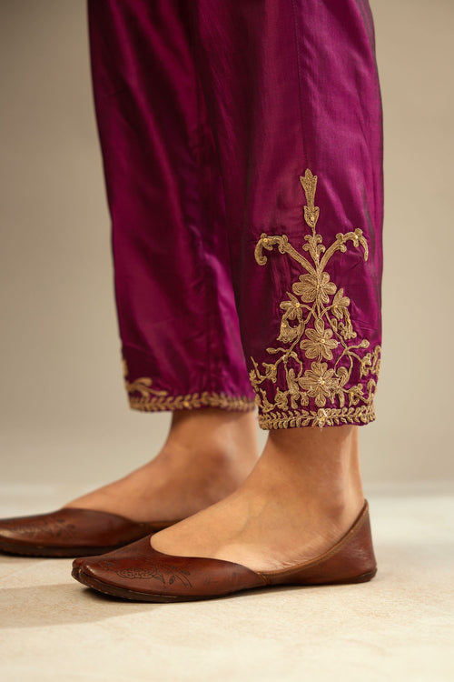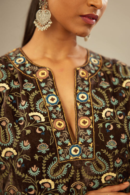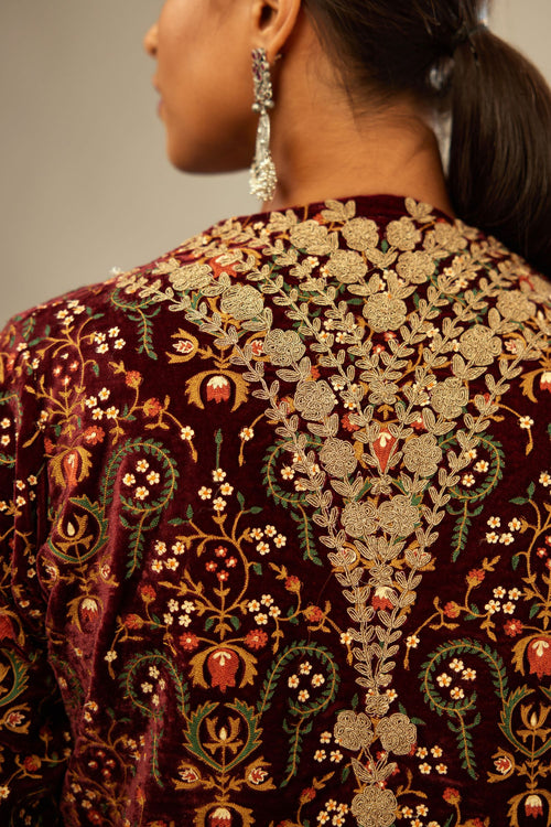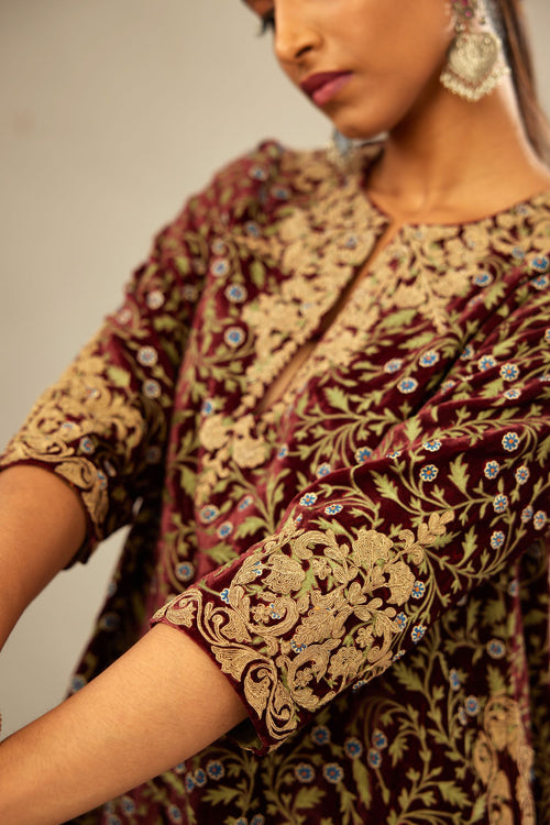 Olive silk organza dupatta detailed with all-over light gold dori embroidery.