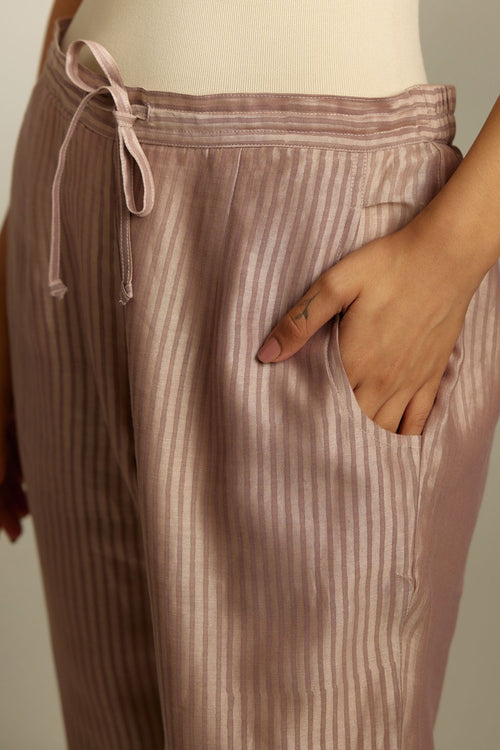 Lilac organza dupatta with silk chanderi appliqué embroidery and gota flower detail.