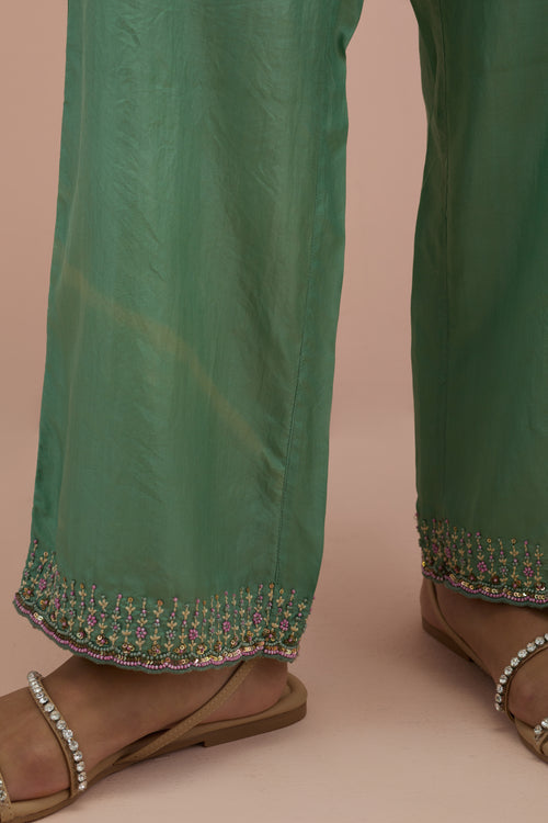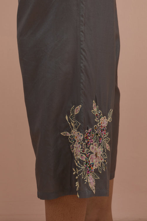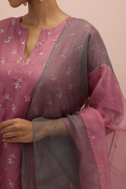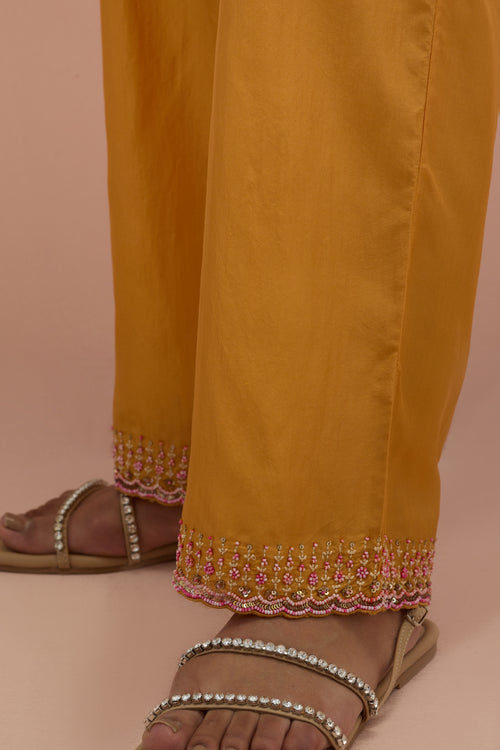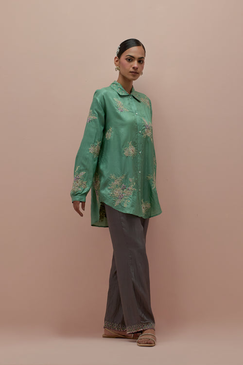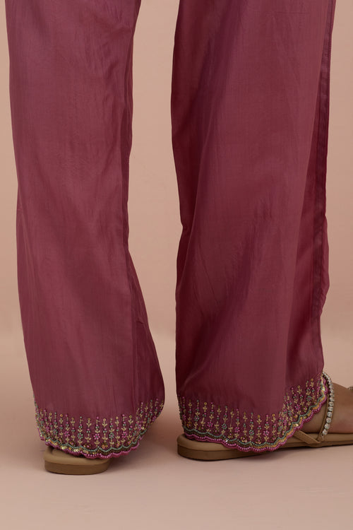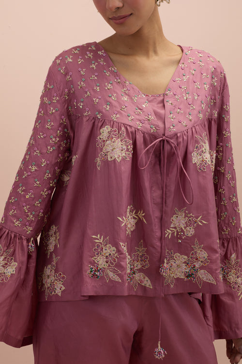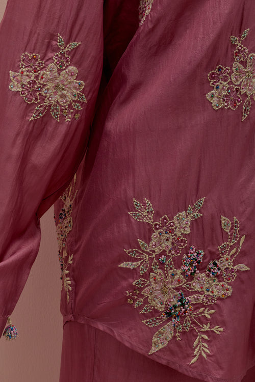 Salmon pink embroidered shirt with full sleeves.