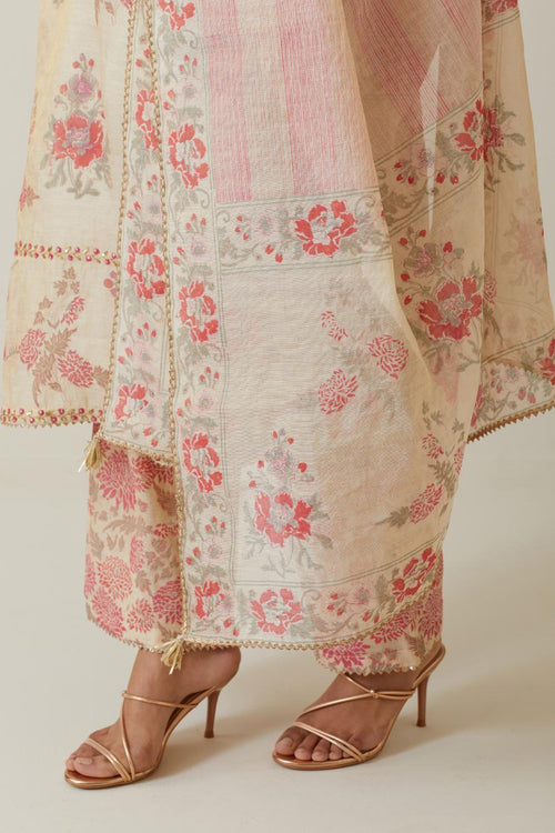 The name of a prosperous ancient city of Bharat, Avanti stands for all that is regal and grandiose. Our Avanti collection has printed floral butas on soft Tissue Chanderi, highlighted with delicate embroidery with Chenille yarn and sequins. The garments are perfectly suited for sultry summer luncheons and more. Welcome the new season with Avanti!